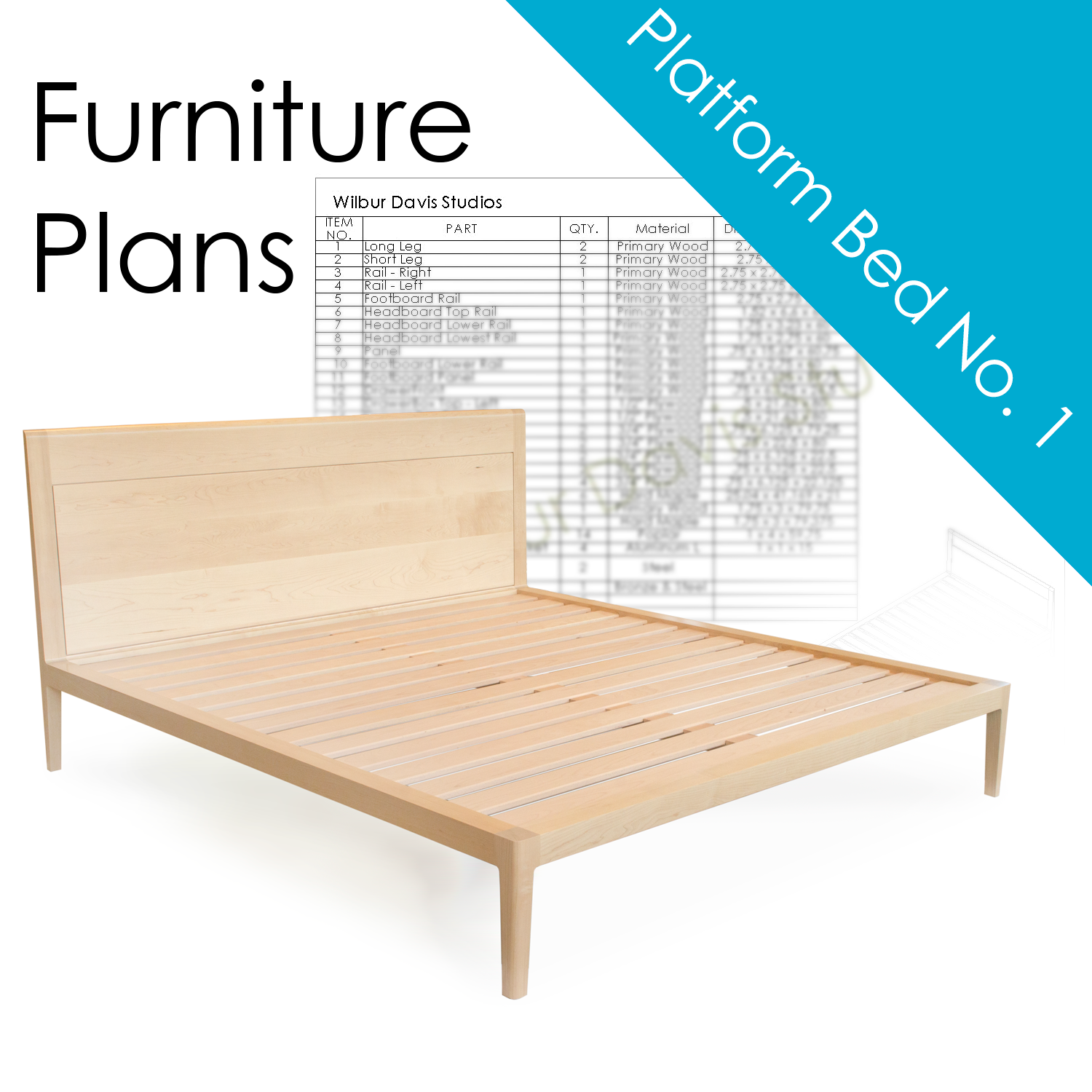 WOODWORKING PLANS for PLATFORM BED No. 1 by WILBUR DAVIS STUDIOS