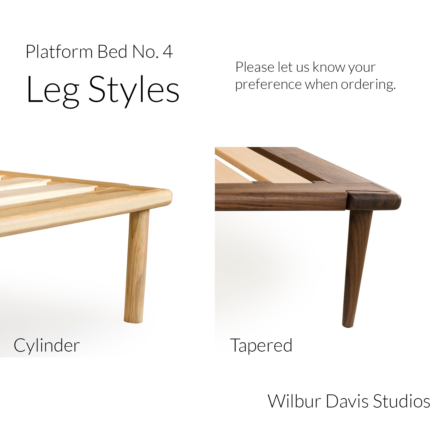 Legs only for Platform Bed No. 4. Buy another set to give your bed a new height or style!