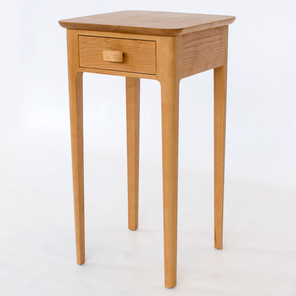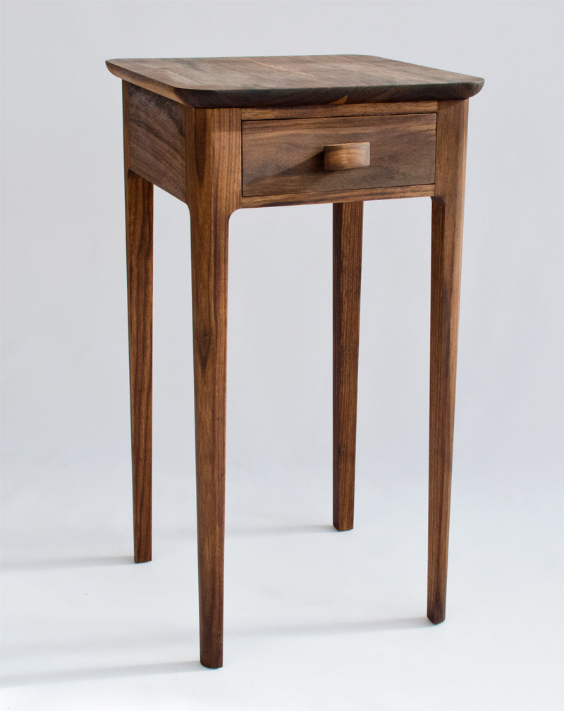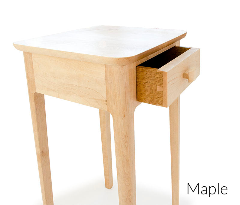 The Petite Nightstand delivers fine craftsmanship and timeless style in a compact form. Its sculptural design features smooth, flowing curves and flush sides for a sleek, elegant look. Thoughtful details like dovetail drawers and solid wood construction make this a small piece with a big impact—one that will bring a smile every time you open the drawer.
